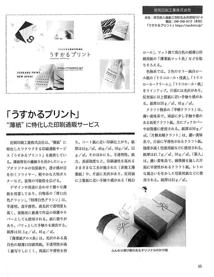 月刊プリテックステージにて「うすかるプリント」が紹介されました